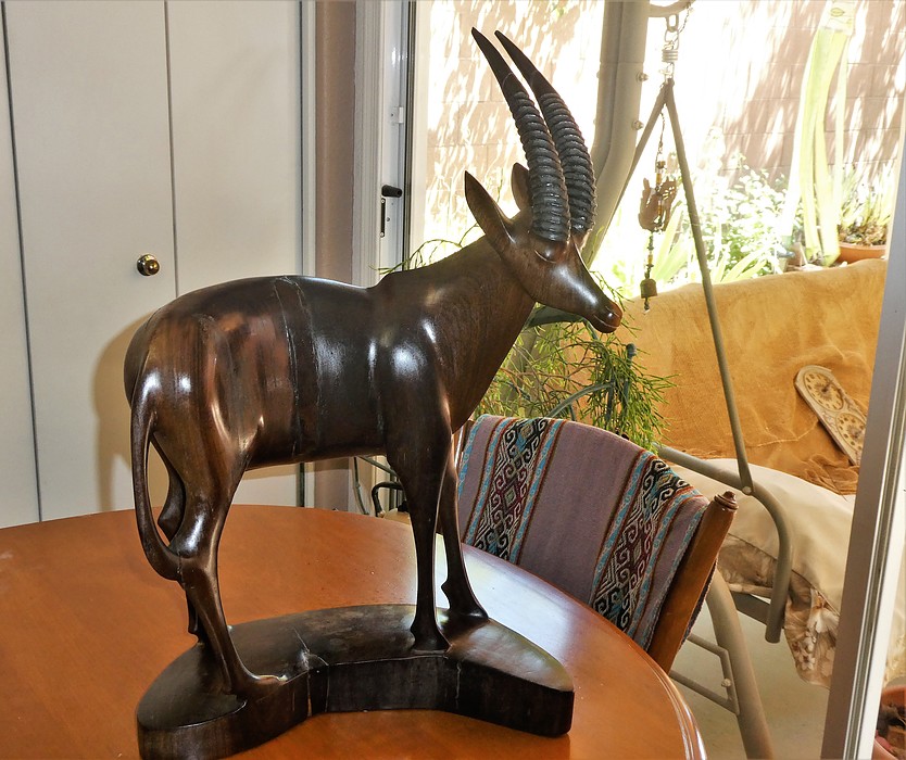 this is the only wildlife I saw but this was before I left. Thot @gummo might appreciate it. I just polished it up. It's been in our family since 1961. I think they got it in the Far East as that's the tour they took back then. I'm thinking it was carved in Bali or Indonesia as they got several carvings of which I still have 4 others. The wood is starting to split pretty badly now. I think it's an African antelope of some sort or maybe an Oryx of which there are none in the wild. They require almost no water so Phx is a good place for it.