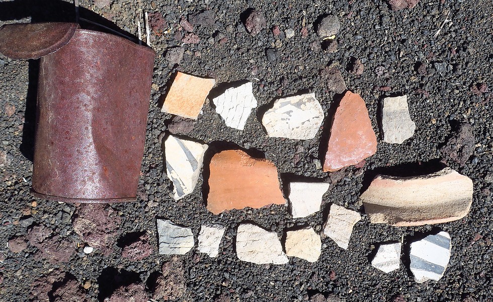I noticed an area with some arranged stone (typical sort of half-circle arrangement, possibly a fort). It didn't photograph well but there was a lot of pottery...too much to fit in my hand so I arranged these for a pic. Of course I re-scattered afterwards.