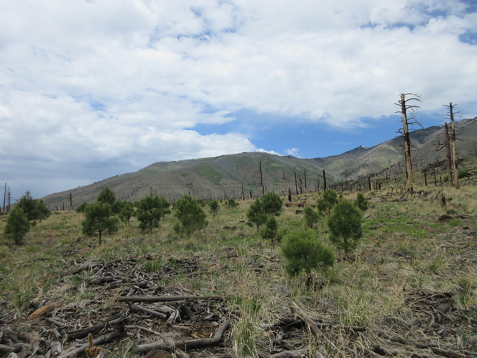 There are so many pines here, that in 40 years, or so, they will need to thin this area again, or risk a wildfire. The density of these guys will never allow them to grow to the size of the snags seen in the background at right, unless some die. That is, if they didn't burn in the 2022 Pipeline Fire.