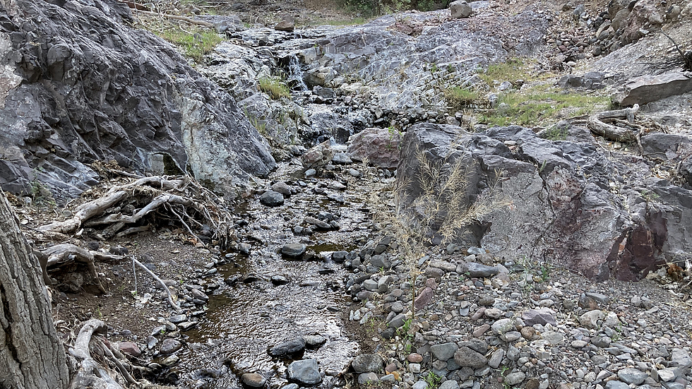 A little water in a rocky canyon