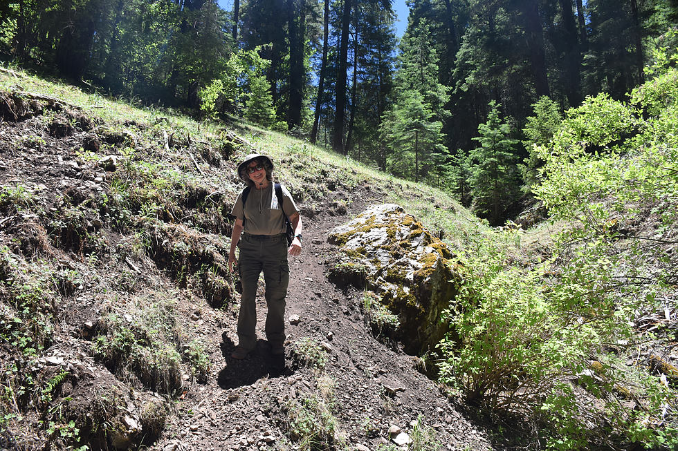 When she got to the top I told her the trail didn't go up but continues on down the creek so she had to come back down. I actually thought it went up but when I got down in the creek I noticed it didn't. It was fun watching her climb up though.