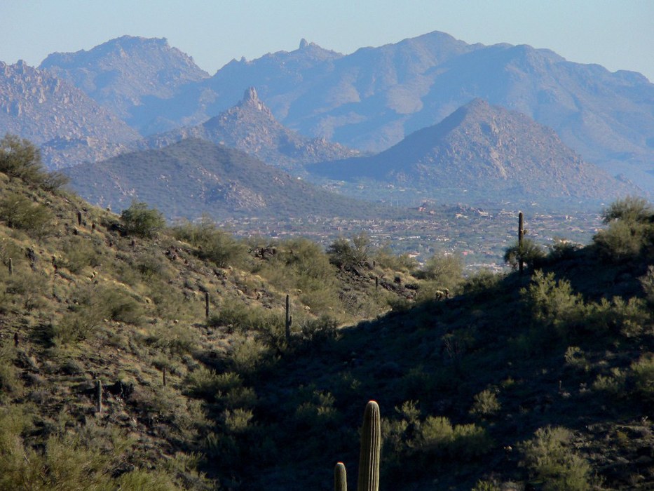 A zoomed in version of Boulder Mtn, Pinnacle Peak and Tom's Thumb.