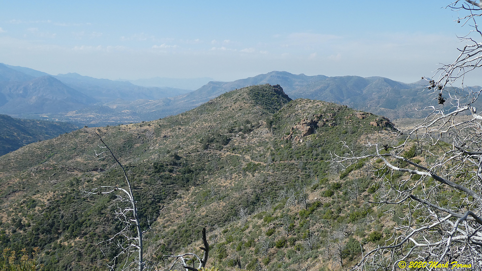 Peak 4862 with Diamond Mountain on the horizon as viewed from Peak 4912. Our original goal is at the lower left of the photo. We didn't feel like descending 500 feet, only to have to climb back up here before our 1100-foot descent back to Sycamore Creek.