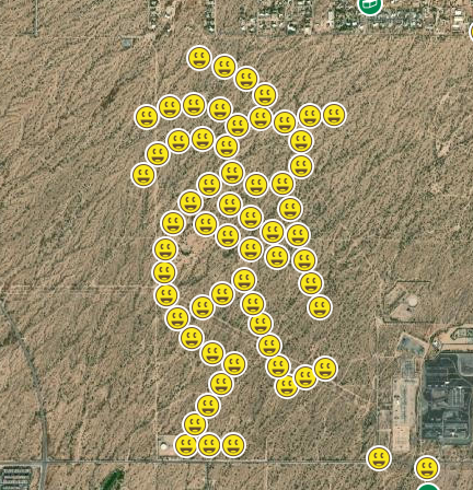 Arizona Stickman series. All caches have false coordinates and are arranged to form Kokopelli. The actual coordinates of the caches were all a few feet off the roadways, so no cross-country walking. It's silly but sometimes I just need motivation to get out and walk, especially in the summer.