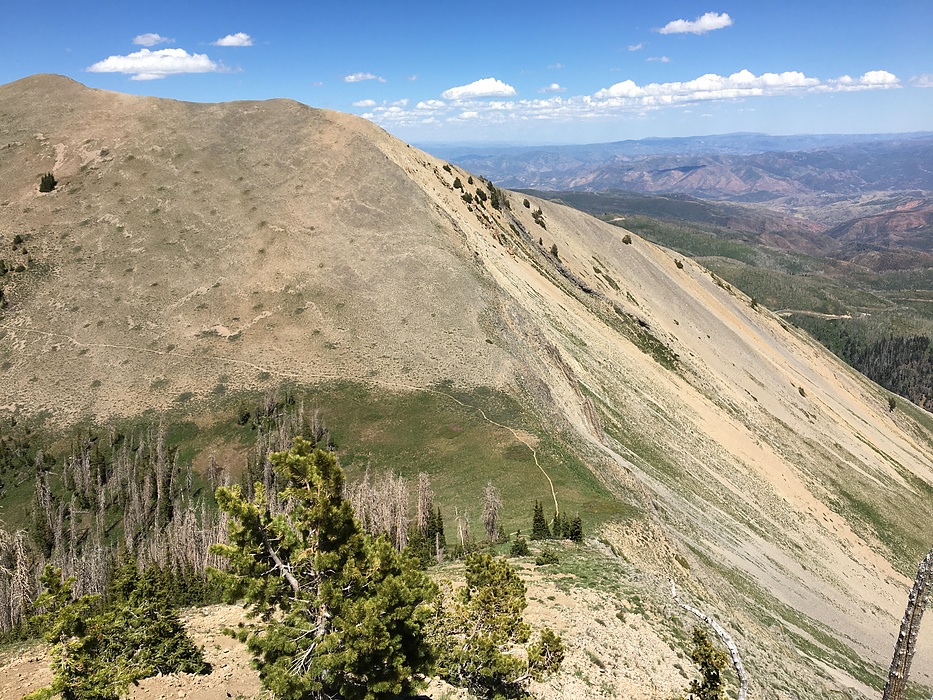 looking back down into Wolf Pass from the summit ridgeline