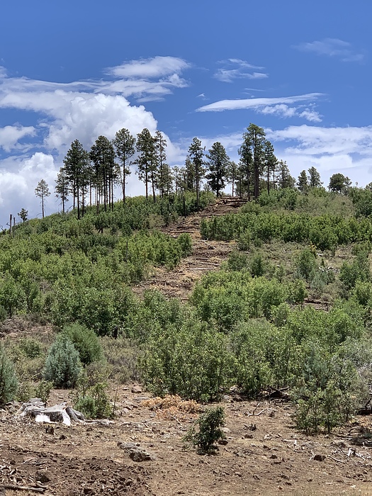 Along US 191 south of Strayhorse Campground. I saw a few of these fire breaks recently made for the Bingham Fire. It appears the fire made no real push into the upper elevations of the Blue Range and seemed to do the most damage pretty far east and away from 191. In fact, not sure how the fire even reached Strayhorse, from a distance there did not seem to be any direct path from where the fire was worst and that area. Most of the damage around Strayhorse, may have just been from back burning.