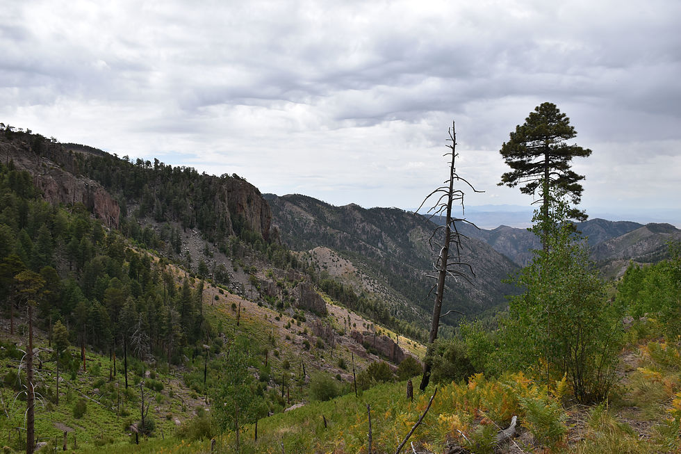 From Chiricahua Saddle looking down one of the canyons to the southeast. Some time in the next year when the weather cools off I want to hike up that ridge in center photo to Chiricahua Peak.
