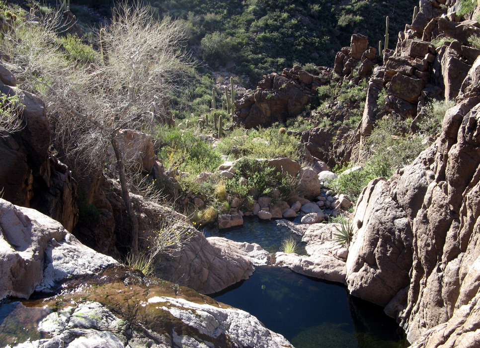 Looking down from above 3rd waterfall...main drainage of Hog Canyon at top