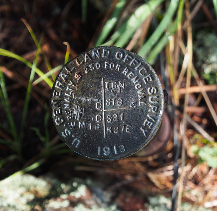 Came across this survey marker approximately on the reservation border. The "WM1R" might mean White Mountain Indian Reservation and the long vertical line may indicate the border.