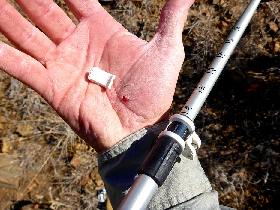 I have had nothing but hell with hiking poles. Either they collapse under the slightest pressure, or you can't flip the lock. Here, I actually managed to snap it. Loops like I will have to resort to duct taping these Leki's like I did with my old Black Diamonds. Do they make pinned poles?