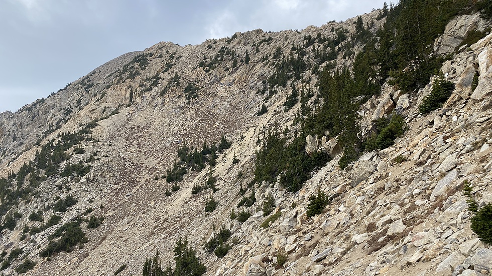 The tungsten mine is the lighter colored rock right in the middle of the photo