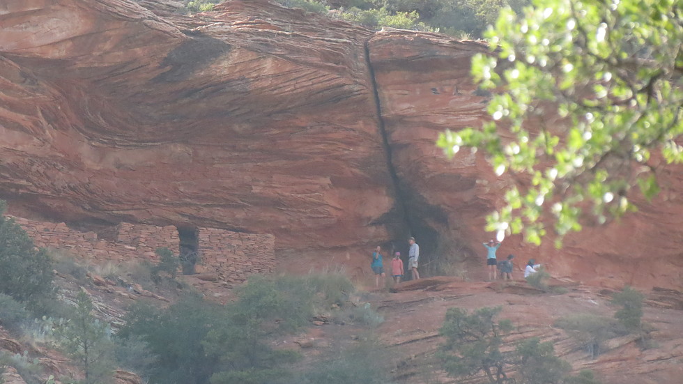 Zooming in on a group checking out the cliff dwellings late in the afternoon
