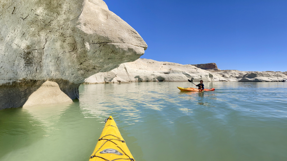 This rock would exist without the lake (and is often dozens of feet under the surface). But isn't it pretty cool to paddle by?