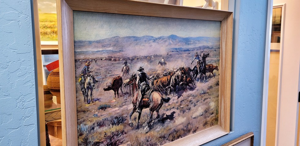 Another Russell reproduction that was hanging at a little hotel my dad had partial interest in at Cut Bank, MT. I found out recently that the elk my dad shot in CO in 1985 and had the head mounted is hanging in the local liquor store. I'll have to check it out the next time I'm through there. Cut Bank is a bit of a gateway to Glacier Park.