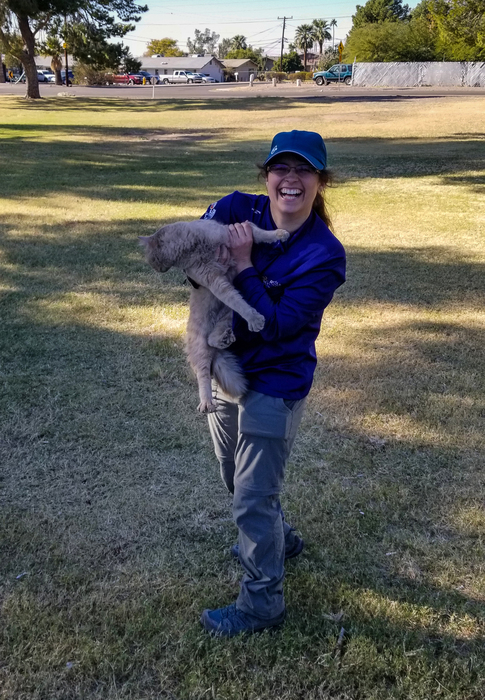 Once we completed the loop and returned to Mountain View Park, we found this cat under Tricia's car. After much cajoling Christina was able to pull the feline to safety.