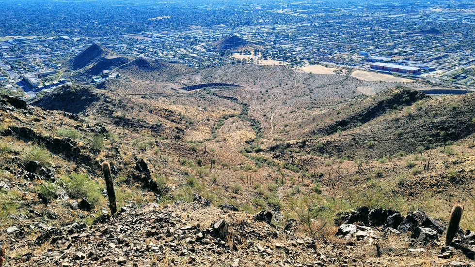 Looking down to the SW. Looks like a little dam down there in center photo.