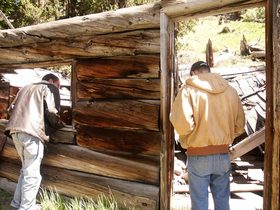 My nephew and son looking at the remains of the cabin where their Great Grandfather lived while working the Mineral Park Mine in the 1940's