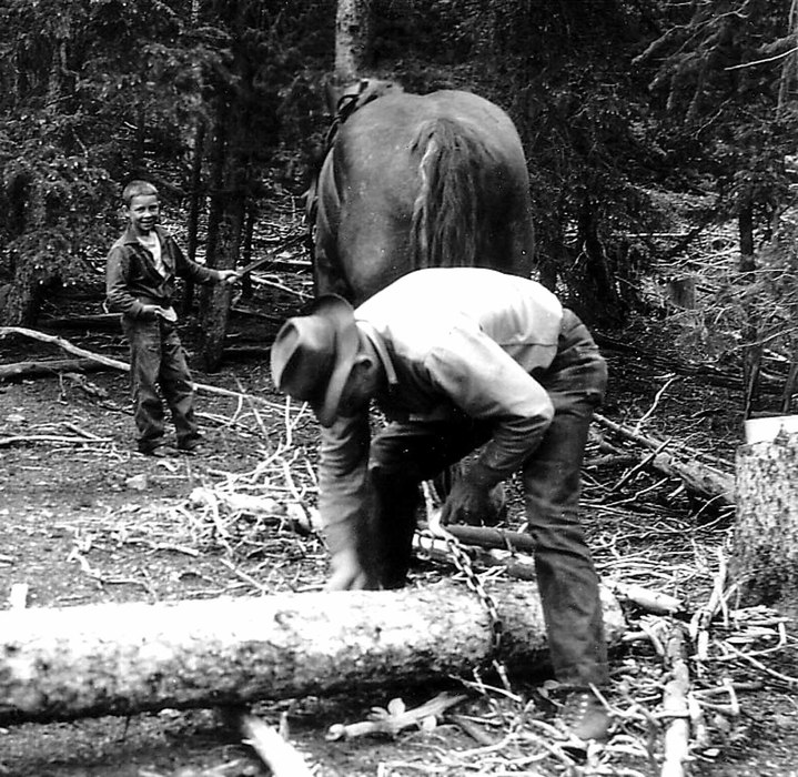 My Father and Grandfather skidding logs out of the forest near Alma to feed the family sawmill in Alma.