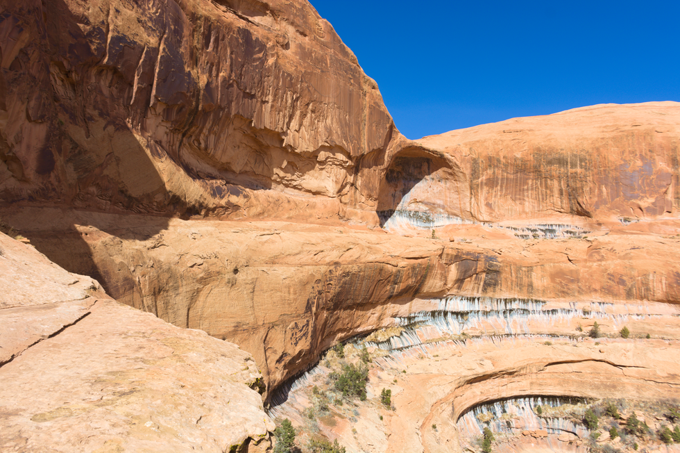 The ledge ends just around the corner from the arch in a very impressive embayment in the cliffs.