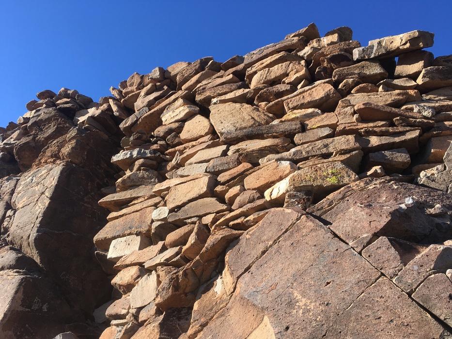 One of the taller fortress walls at the west ruins site, directly above a panel of petroglyphs