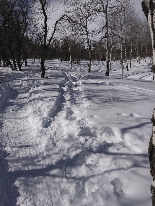 It was deep snow pack. The trail became very confusing several times as other well-worn "trails" were made by snowshoes and skiers.