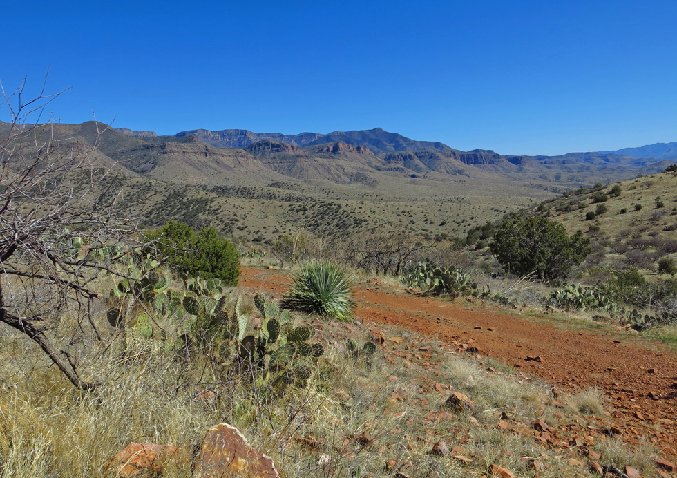 Views SE- Headed back down from Thompson Mesa via very serious modified 4WD FR895A-FR97 to FR60
