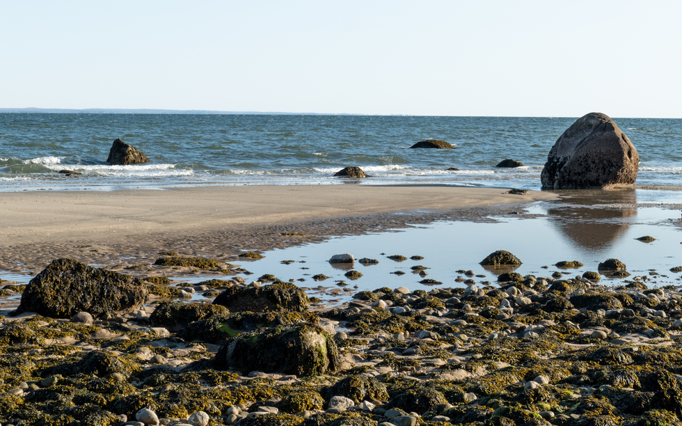 I found this array of boulders suggestive, the large rock to the middle right suggesting a parent keeping a guarding eye on their children playing in the water, with the smaller rocks in the lower left toys and coolers awaiting the children's return back on shore.