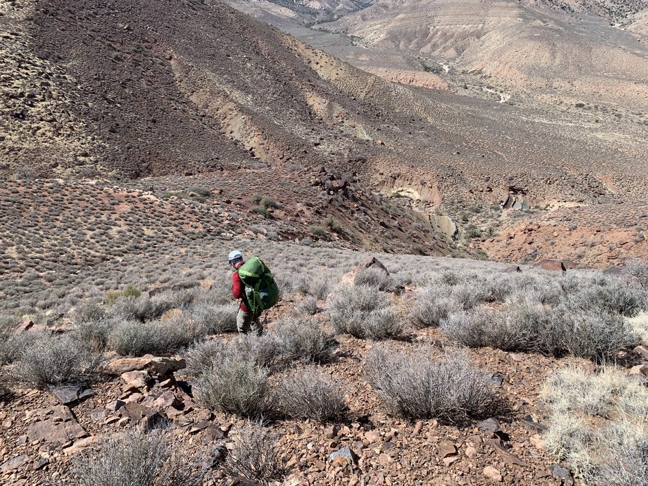 An off trail section as we head for Nankoweap Creek seen in the distance.