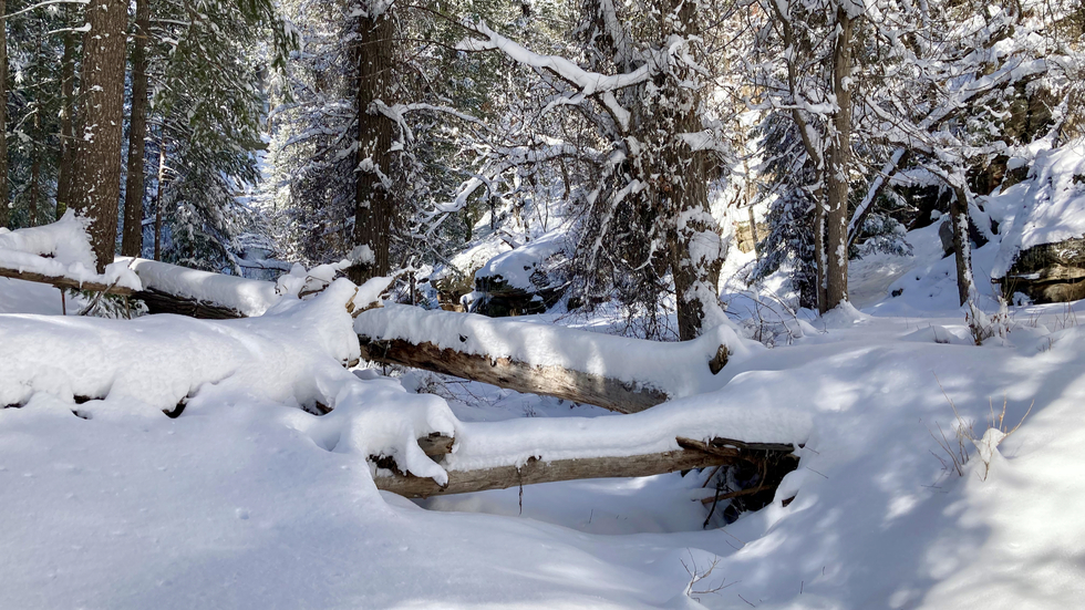 If the creek had actually had the water it should have in March, I wouldn't have been snowshoeing here.