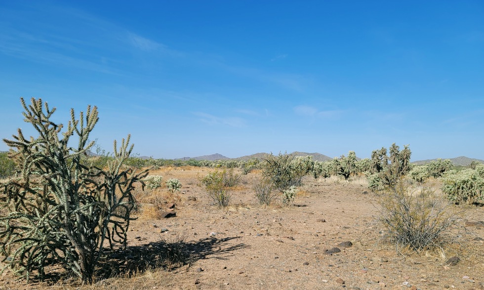 There is a rather extensive teddy cholla forest here but I haven't been able to figure out how to photograph to show it to you. Its a bit in the near background and stretches north/south for the most part.... and it's dense. This is looking SW.