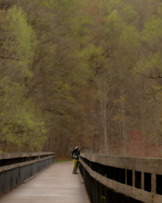 A view across the foot bridge. A photo of a photographer, as well as evidence of the sparsity of the crowd on this day. I can only imagine on a sunny summer Saturday that dozens of people - hikers, photographers, kids and parents, teens and individuals and groups of every stripe - would be enjoying a walk or hike or view.
