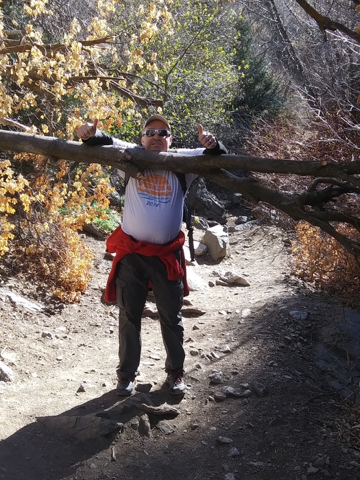 A new, unexpected object along the trail. A large branch had broken since last year and hung over the trail.
