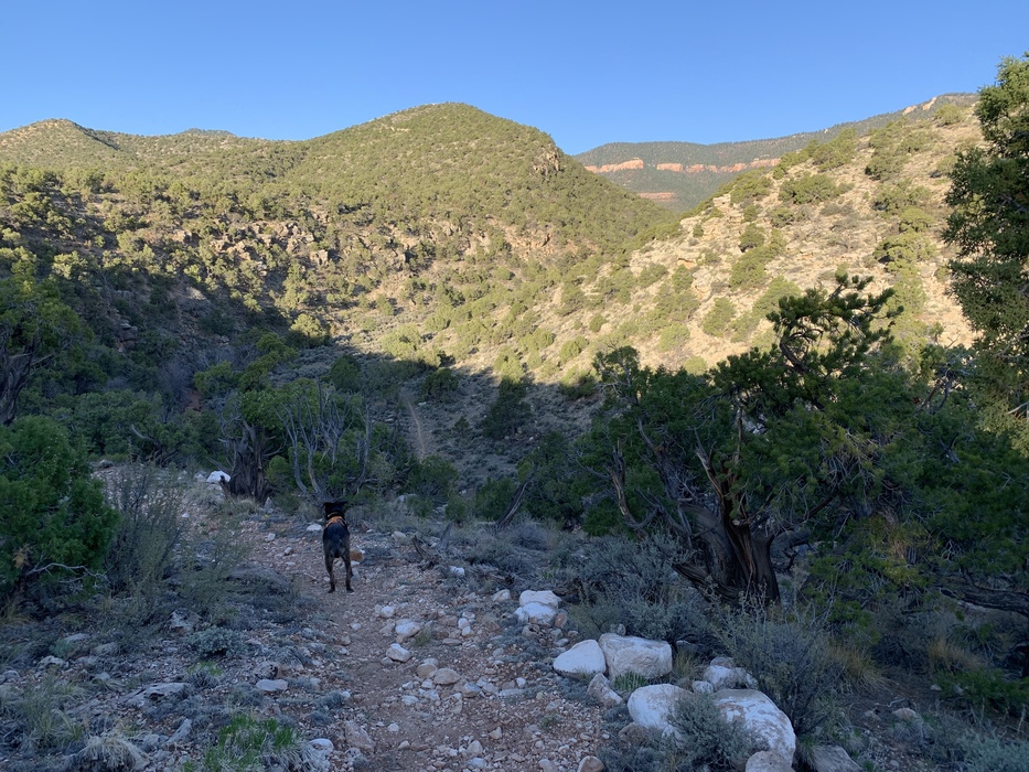Descending into the North Canyon drainage, the trail can be seen in the distance.