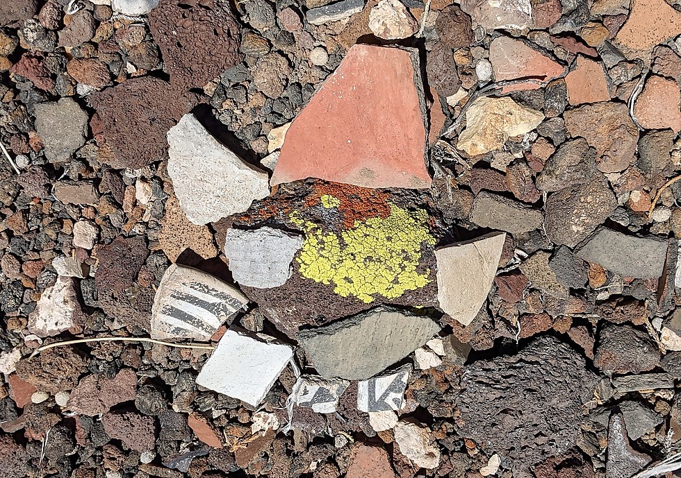 Picked up some of the pottery and arranged it around the lichen (then re-scattered it).