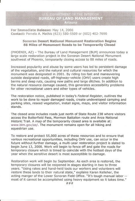 BLM - temporary closure to all vehicles. Any bets when this will re-open? I bet on never...