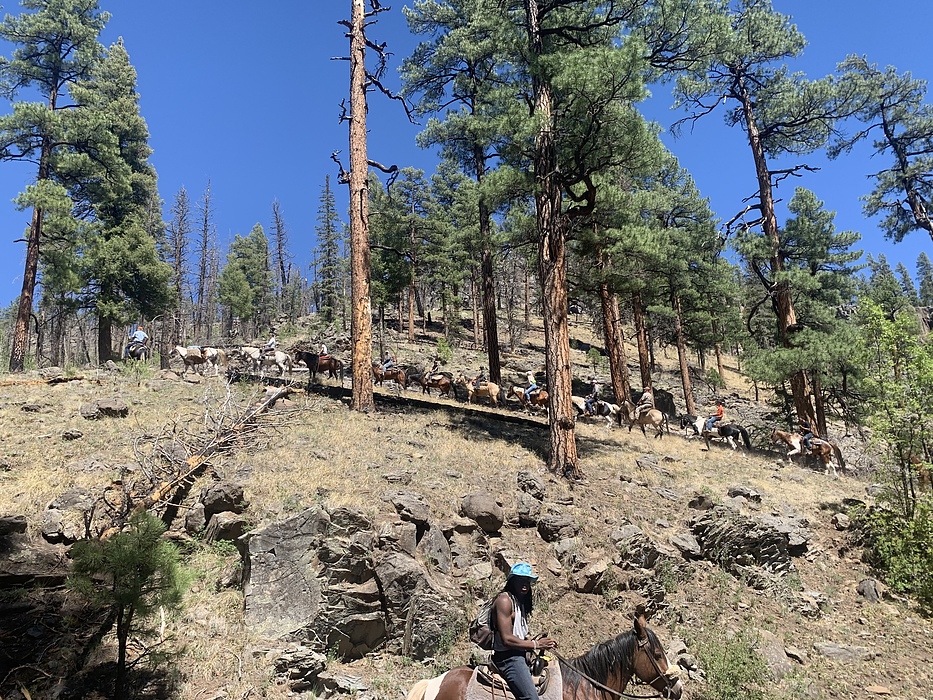 17 boys, two coaches, one wrangler for every five boys and the owners of the ranch plus a couple of guest, made for a big group. The nose to butt riding was scenic, but a little tame for me, by the end of the ride, I was happy for some chances for free riding and doing some trotting in the open areas.