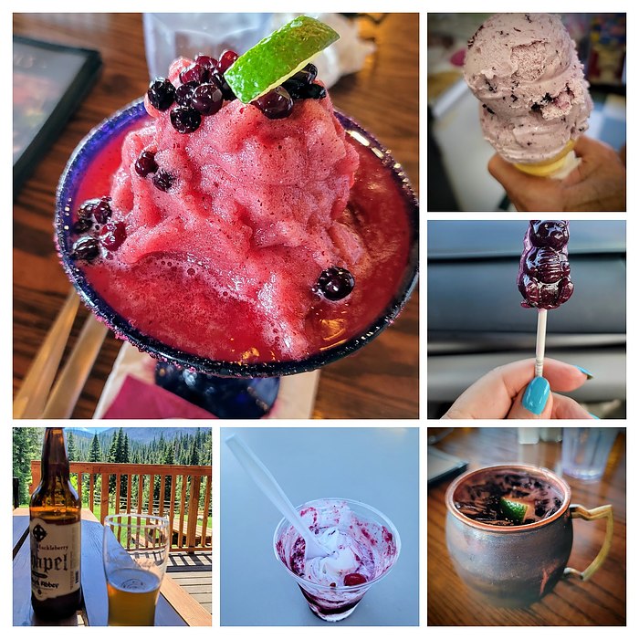 It was a huckleberry week starting and ending with huckleberry ice cream, both in Idaho (upper right photo).