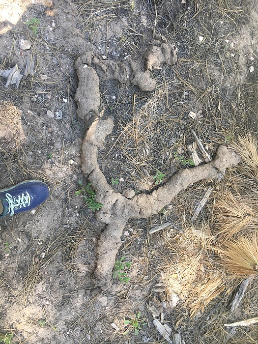 The only one I saw, whatever it is. Resembles filled animal tunnel exposed when surrounding dirt was eroded away, but this is fairly easily crumbled itself...