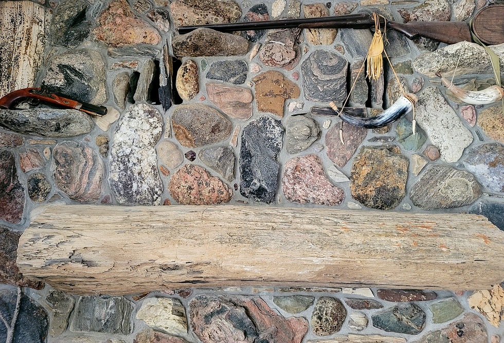 HOMESTEAD TOUR: My cousin Kenny and his wife gathered all of these rocks from around the homestead for this fireplace. The mantle is petrified wood from Dead Indian Coulee which runs up to my dad's old place (now my cousin's son's property) and my cousin Brian's place. There is lots of petrified wood through this particular coulee. It is extremely HEAVY and they were quite nervous over the installation as was the installer.