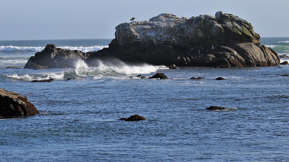 The evening shoot was between Cayucos Point and Estero Bay. I spent most of it shooting this rock and the wave action around it. I struggled with my settings but managed to get a couple good photos. That pelican stayed up on Contstantine Rock for quite awhile. Other birds came and went constantly.