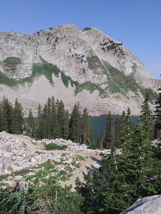 First sight of White Pine Lake with "Broken Heart Mountain" in the background.