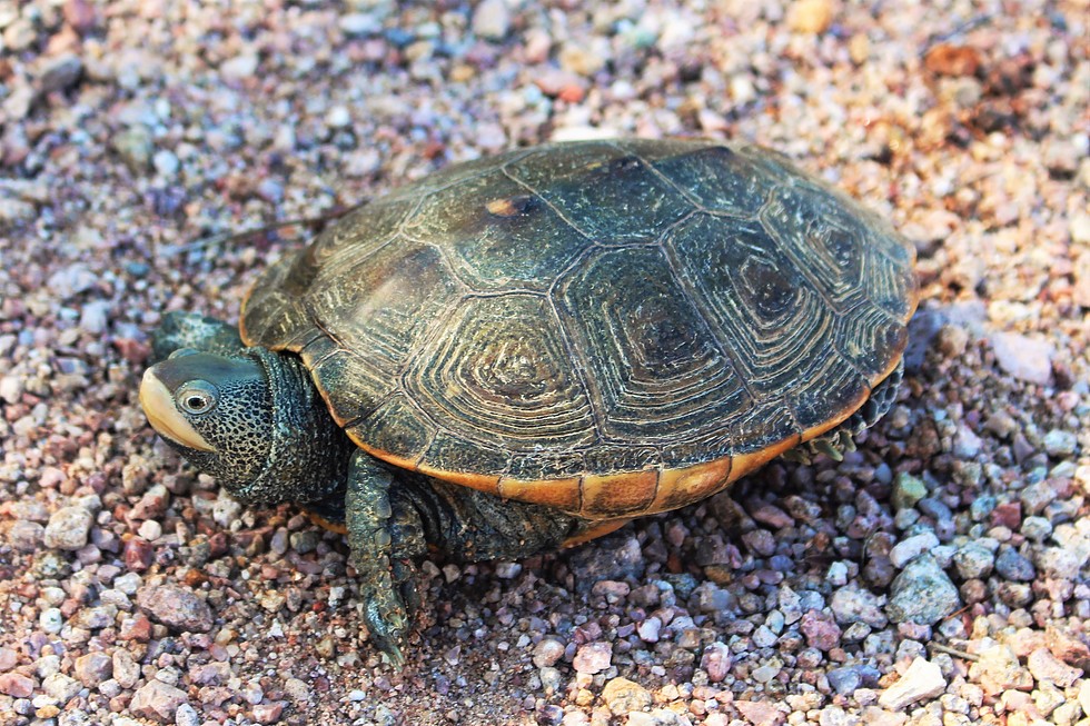 WTF!? I thought this bloke was a mud turtle that lost its way, but it's a Diamondback terrapin from the east coast, a non-native released pet. If I knew that, then I would have taken it home or to the park service. Instead I gave it water (he was very dehydrated) and let it fend for itself.
