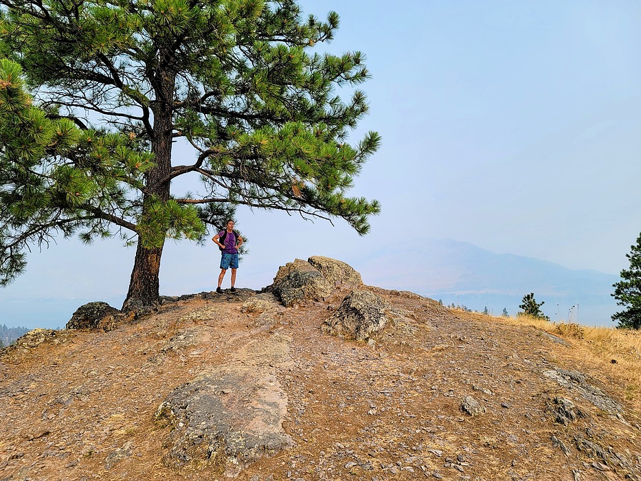 We made it but of course the view is pretty obscure. There is mountains and a lake in the background. Flathead Lake is the largest natural freshwater lake by surface area that is west of the source of the Missouri River in the contiguous United States.