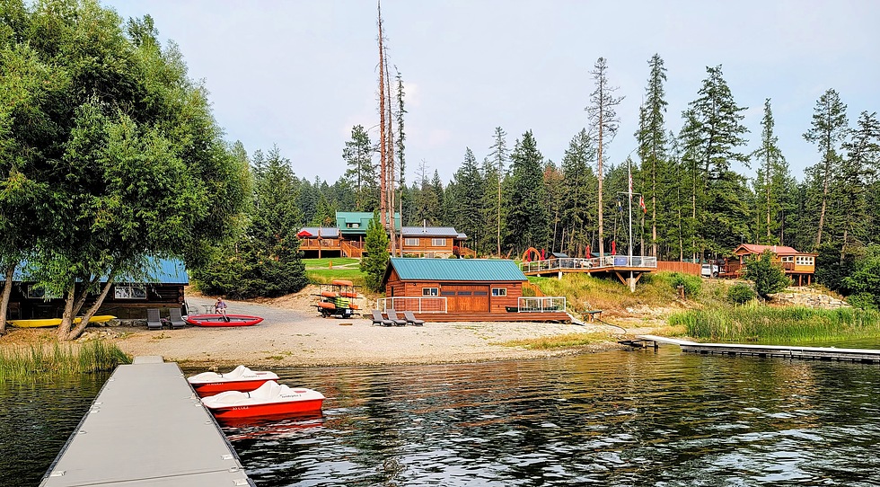 Looking back at Lake Mary Ronan Lodge. They make the best Huckleberry Mule I've ever had. The bartender says they make their own ginger beer and I think that's the secret in this case. The garage in front is actually a work out room. There is a deck and bar over on the right. The main lodge is center background where they play live music and serve dinner.