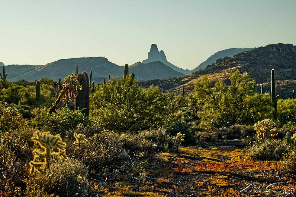 Weavers Needle basking in the morning sun.
