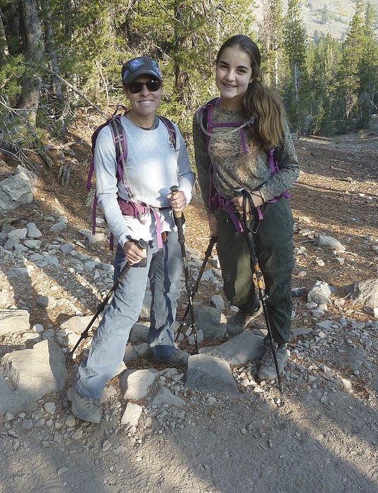Kim (left) & Ruby (right) .3 mile before coming to the waterfall; (9,103'). P1000649
