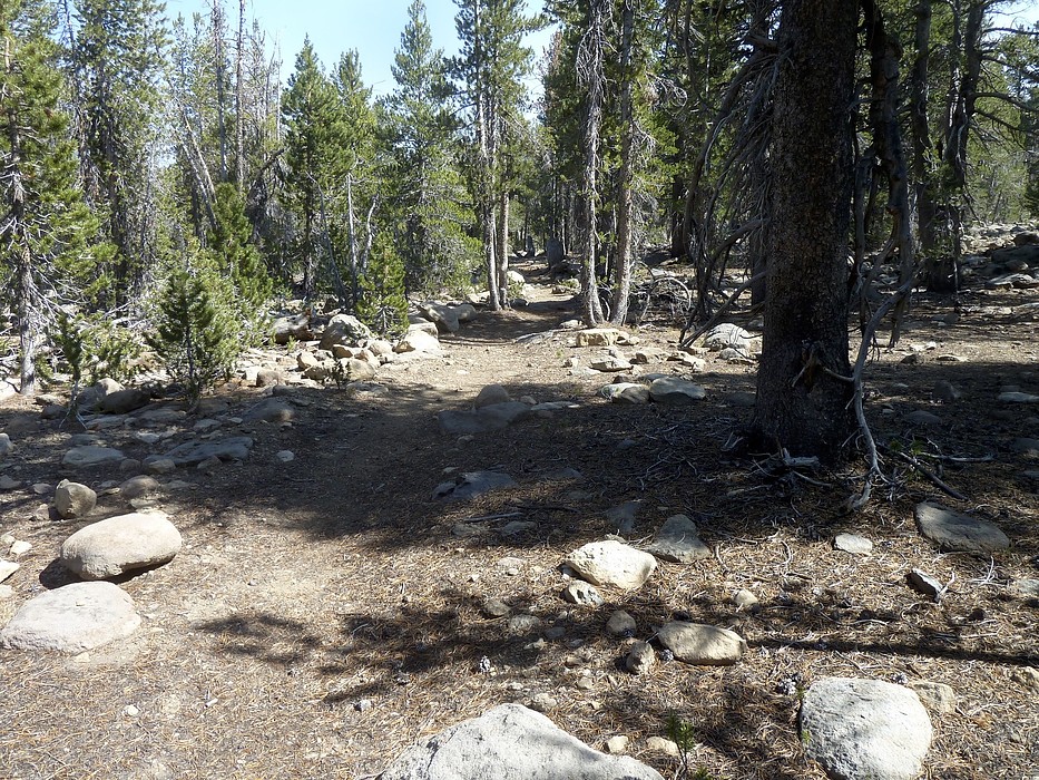 Trail shaded & relative level, trending lower in elevation. P1000795