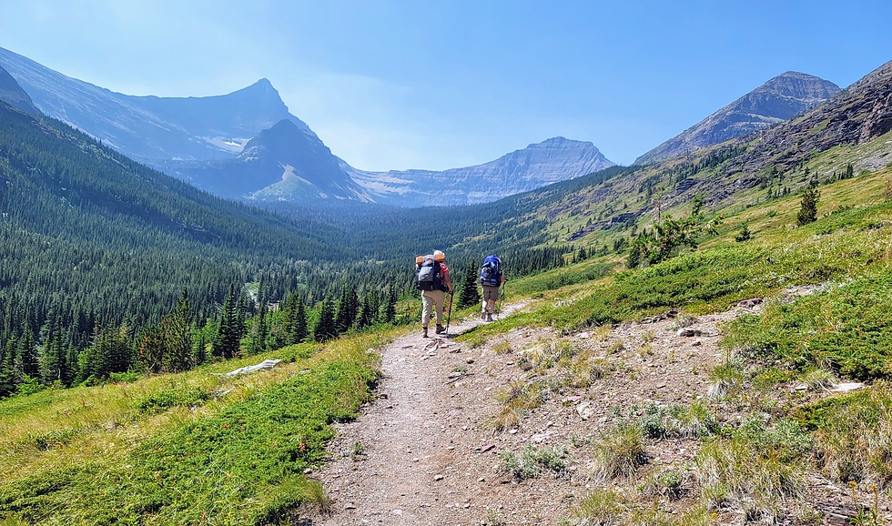 Being a farm girl, I love wide open spaces and so I always appreciate hiking in these incredible valleys of Glacier Park. Flinsch Peak on left (the horn), Mount Morgan on the right background. Oldman Lake is below both of those peaks.