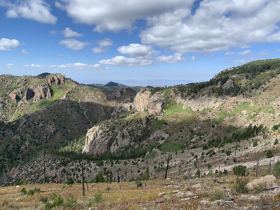 Rucker Canyon, Paint Rock, and Chiricahua Saddle as seen from Aspen Saddle.