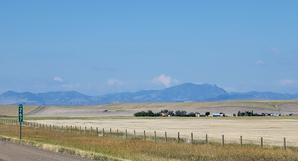 looking toward the BOB in the Rocky Mountains on I-15 between Ulm and Cascade, MT